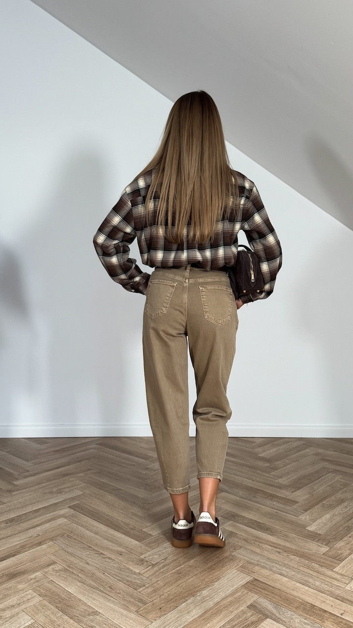 Spodnie typu balon z wysokim stanem – modne, wygodne i świetnie podkreślające sylwetkę. Luźniejszy krój nogawek nadaje im lekkości, a wysoki stan pięknie zaznacza talię. Idealne do codziennych i eleganckich stylizacji.
