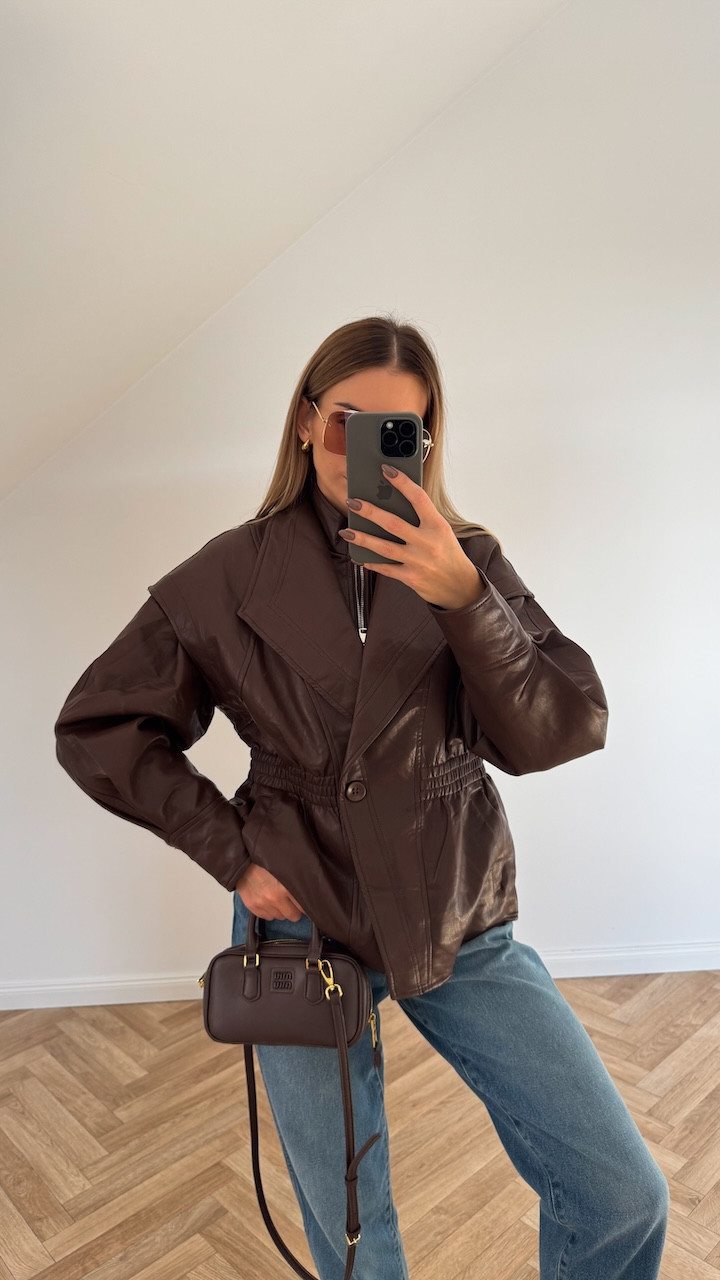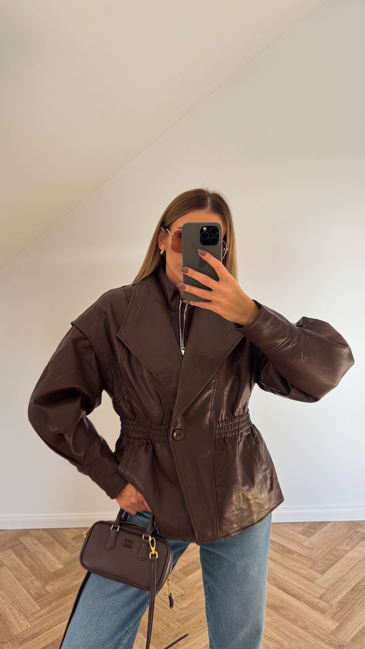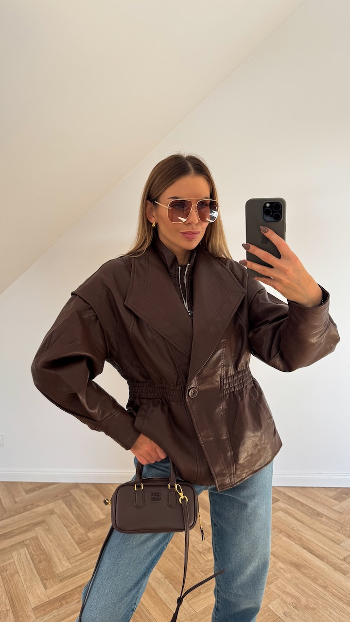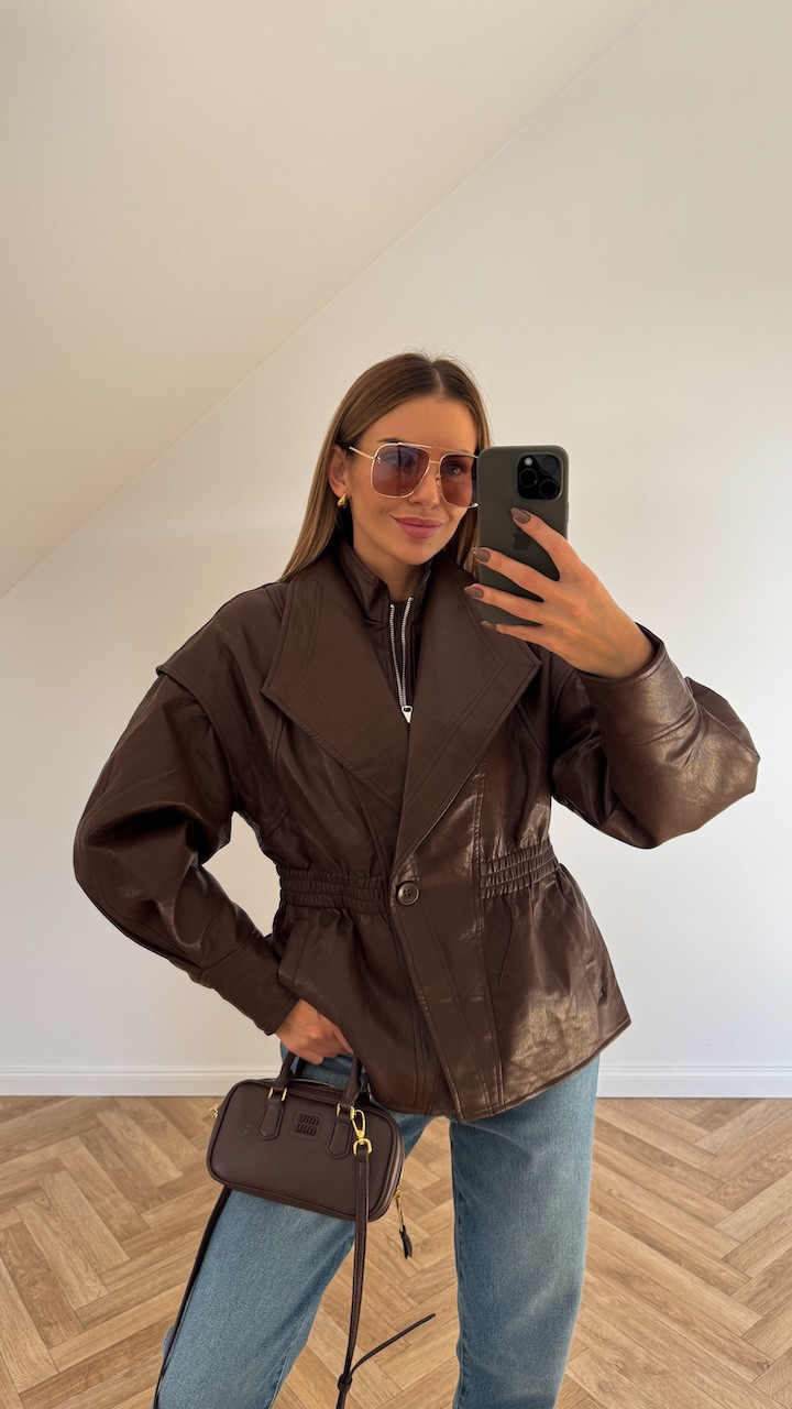 Kurtka z ekoskóry brązowa taliowana REVIA