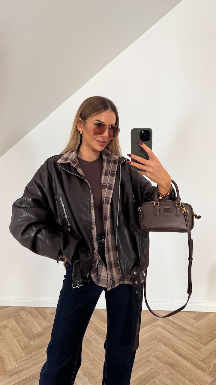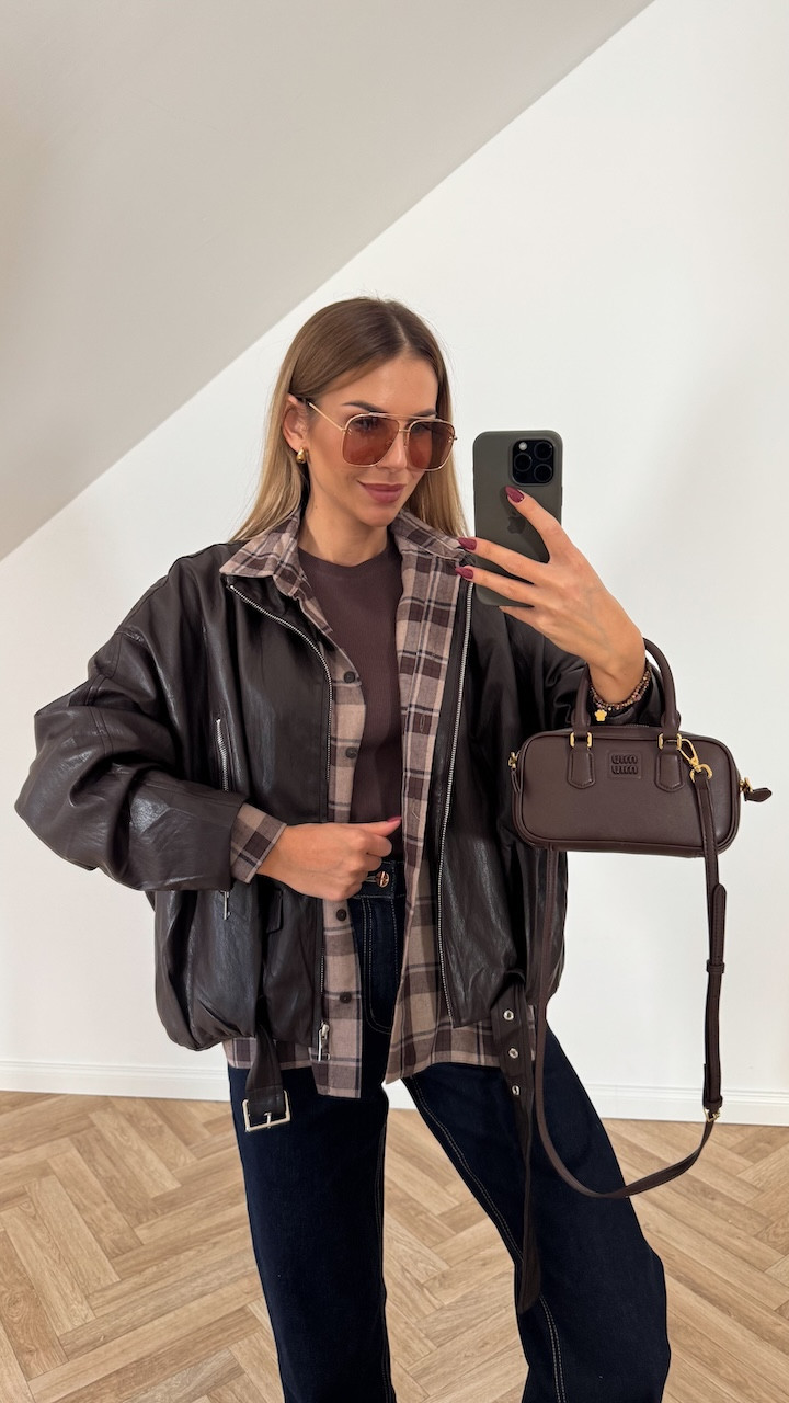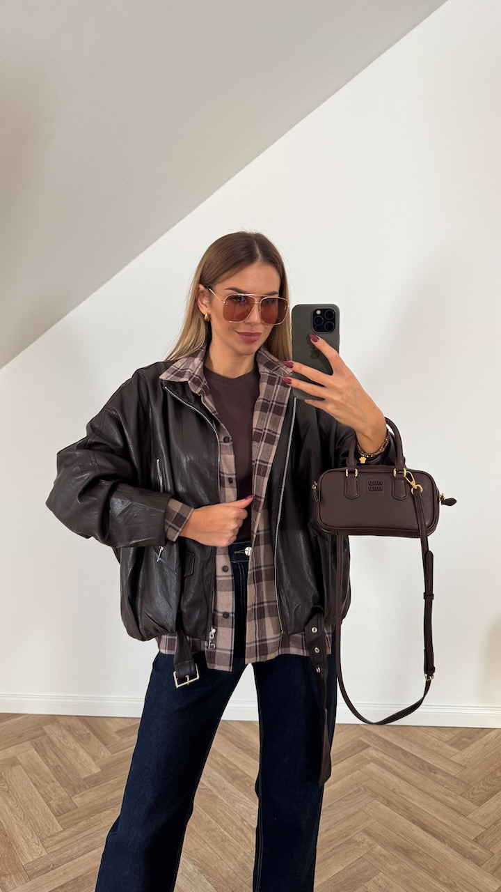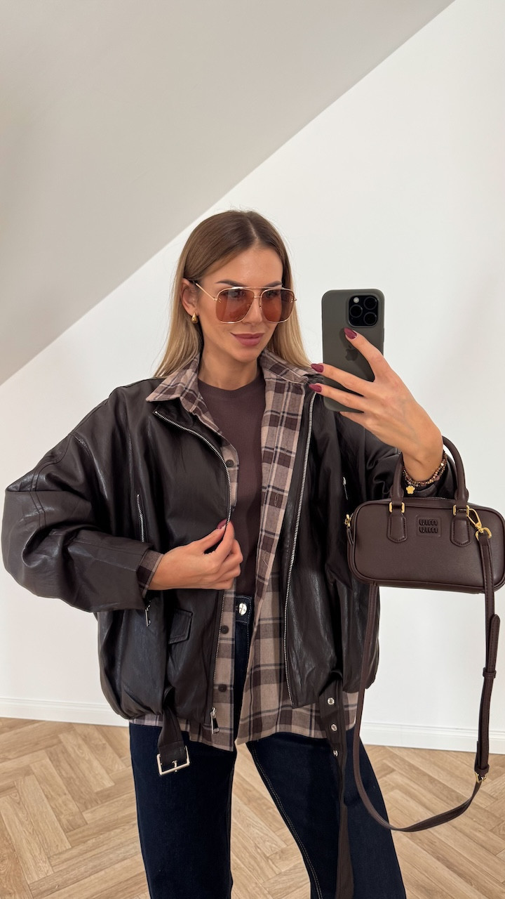 Kurtka bomberka z ekoskóry VIRGINIA II czekolada