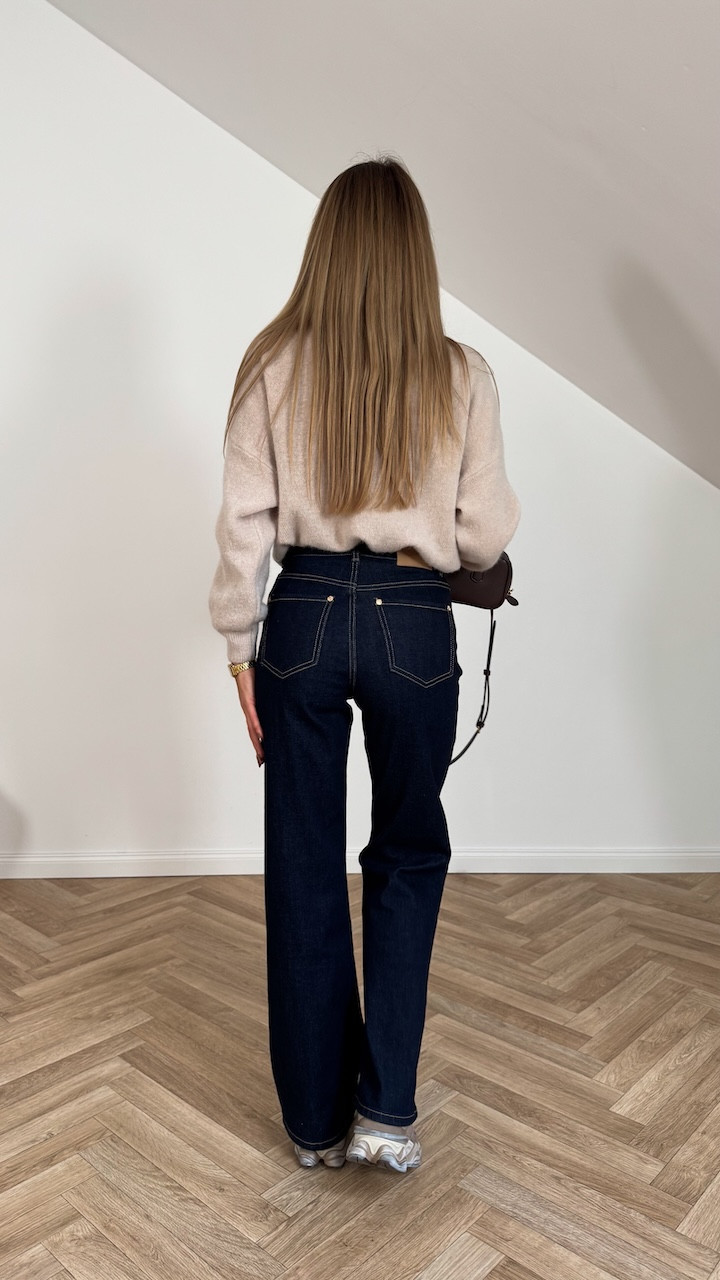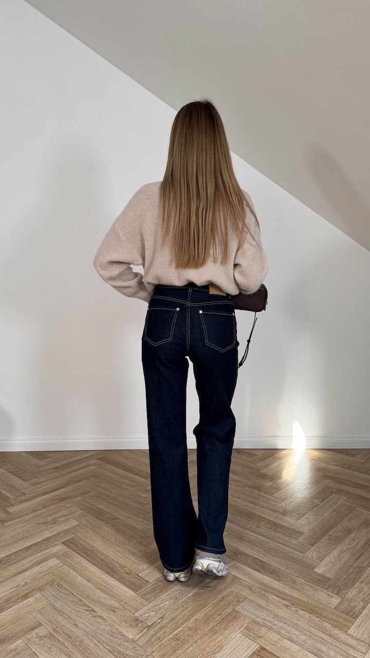 Stylowe spodnie jeansowe typu Wide Leg o prostej, szerokiej nogawce. Wykonane z elastycznego, wysokiej jakości jeansu Premium, który łączy komfort noszenia z trwałością. Dzięki prostemu fasonowi i jasnemu odcieniowi świetnie sprawdzą się w codziennych stylizacjach, zarówno z elegancką koszulą, jak i swobodnym t-shirtem.