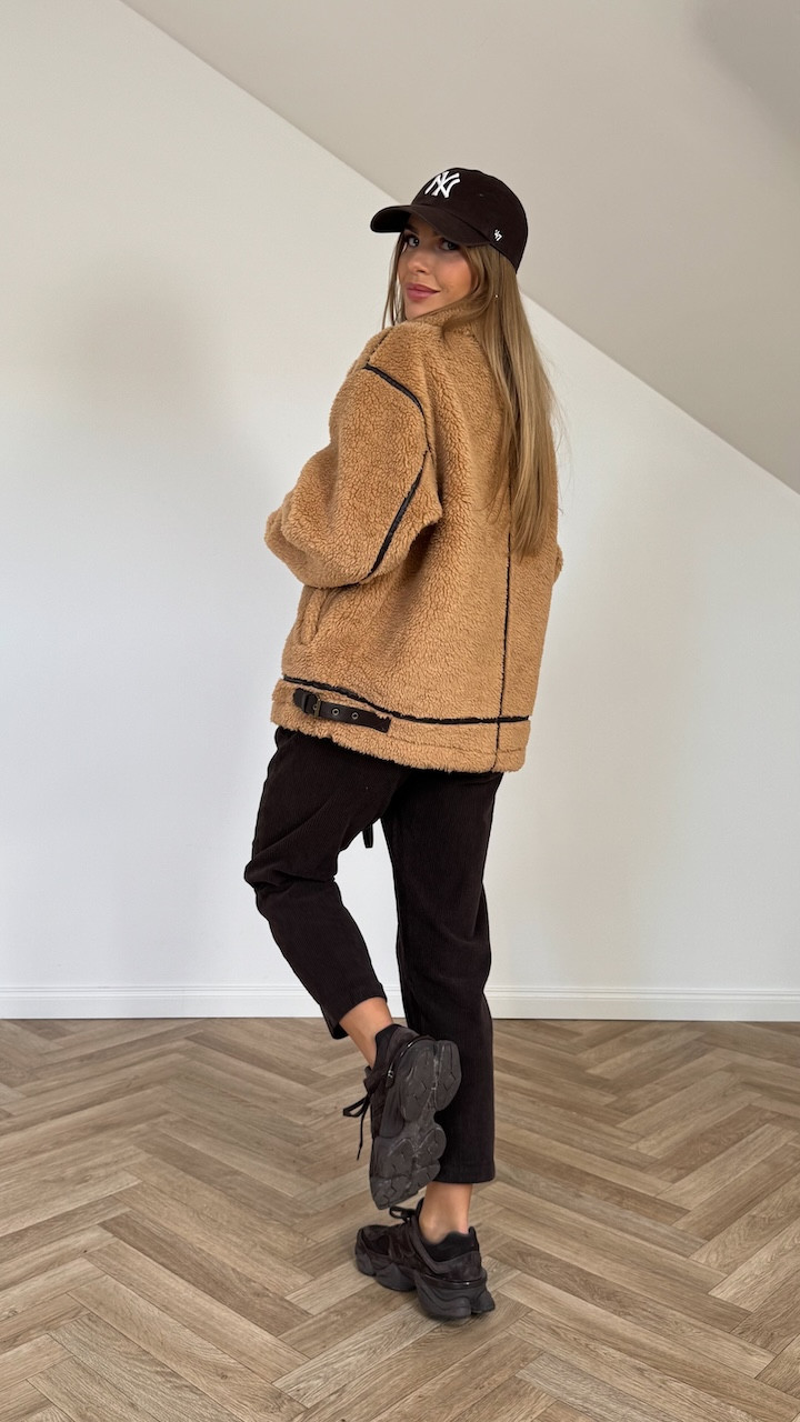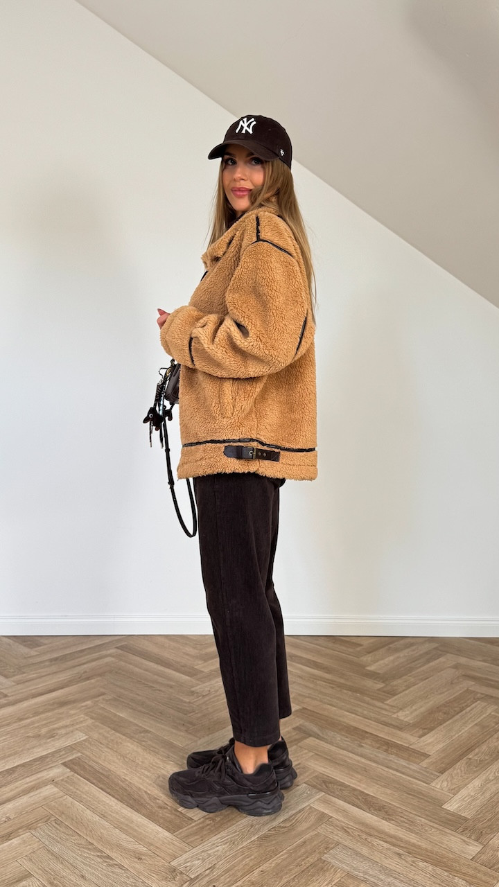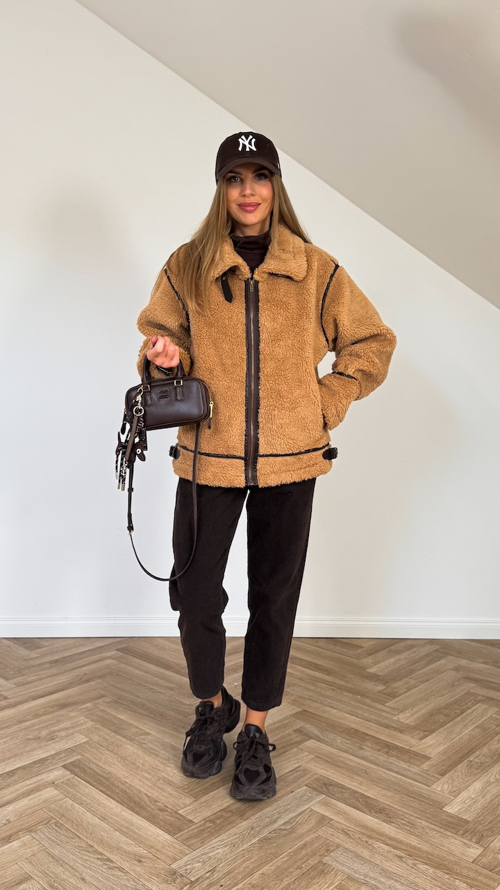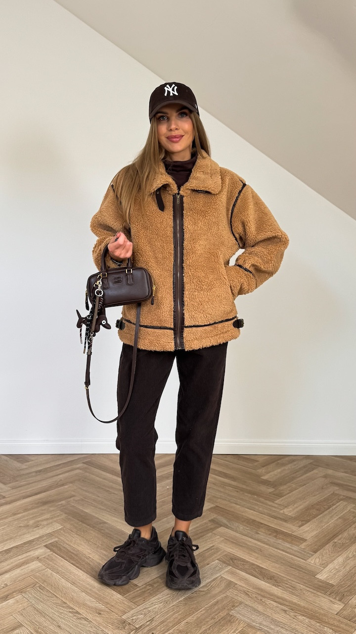 Dodatkowe wstawki z ekoskórki podkreślają modny charakter kurtki, a kieszenie po bokach zwiększają jej funkcjonalność. Polar jest niezwykle miły w dotyku, idealny na chłodniejsze dni – sprawdzi się zarówno w codziennych, jak i bardziej casualowych stylizacjach.