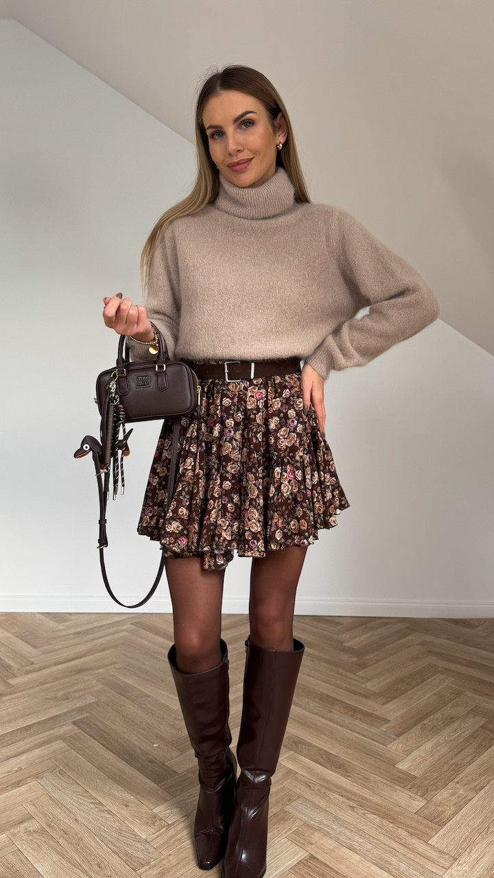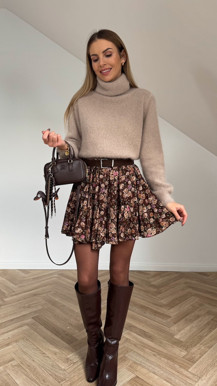 Luksusowy model swetra z domieszką angory to idealna propozycja na chłodniejsze dni. Wykonany z miękkiej, puszystej przędzy, jest ciepły, przyjemny w dotyku i niezwykle lekki. Posiada golf, który nie przylega ściśle do szyi, co dodaje mu wygody i elegancji. Sweter ma lekko luźny krój, dzięki czemu świetnie prezentuje się zarówno solo, jak i pod marynarką.