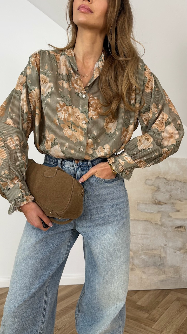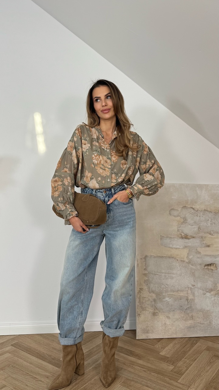 Koszula z lyocellu AMILLA szałwiowa w beżowe kwiaty
