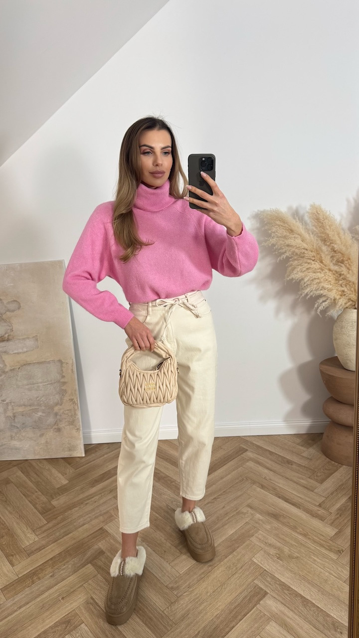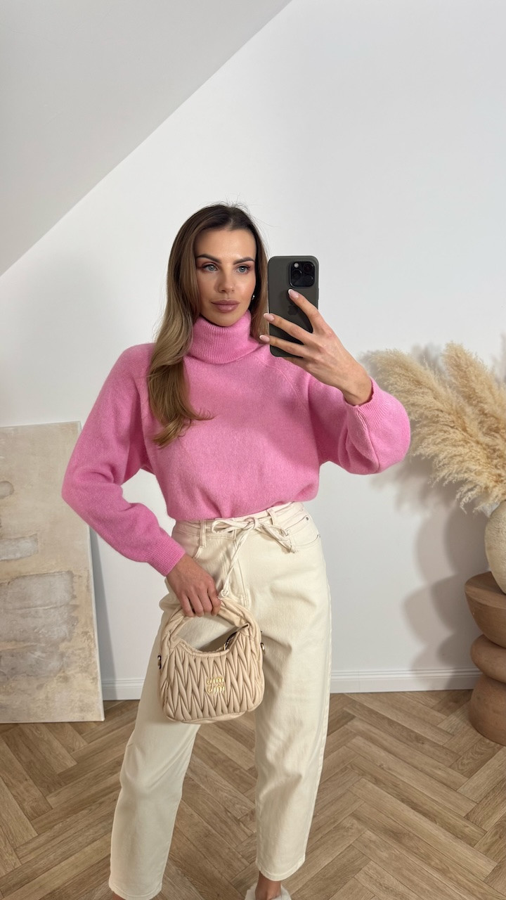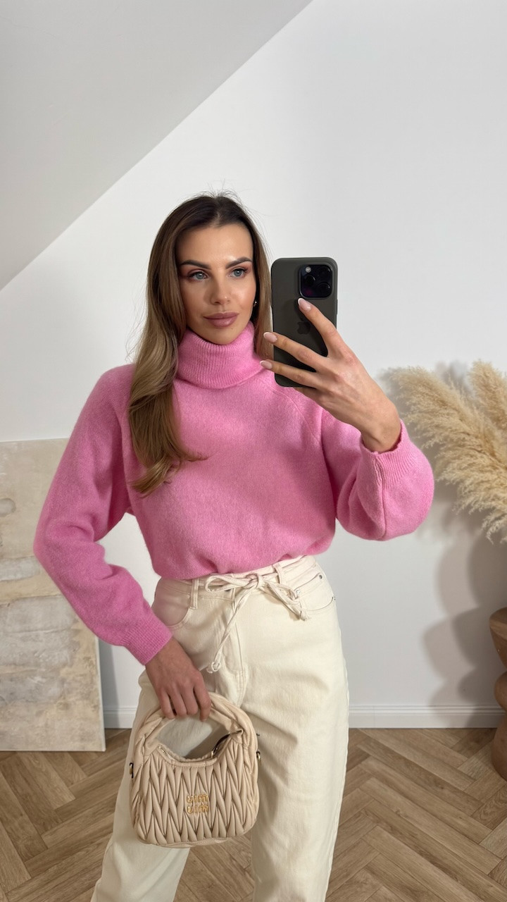 Sweter z golfem BABY ALPAKA RÓŻOWY