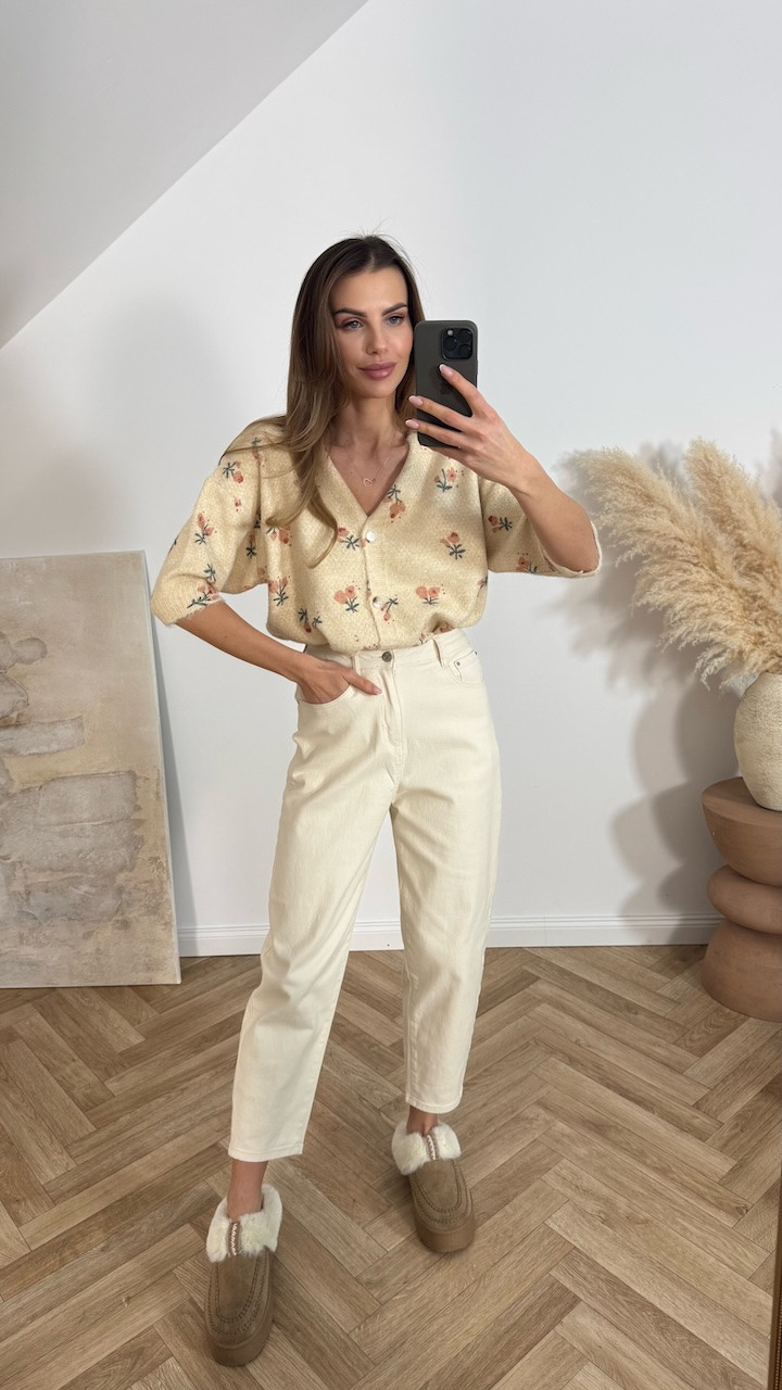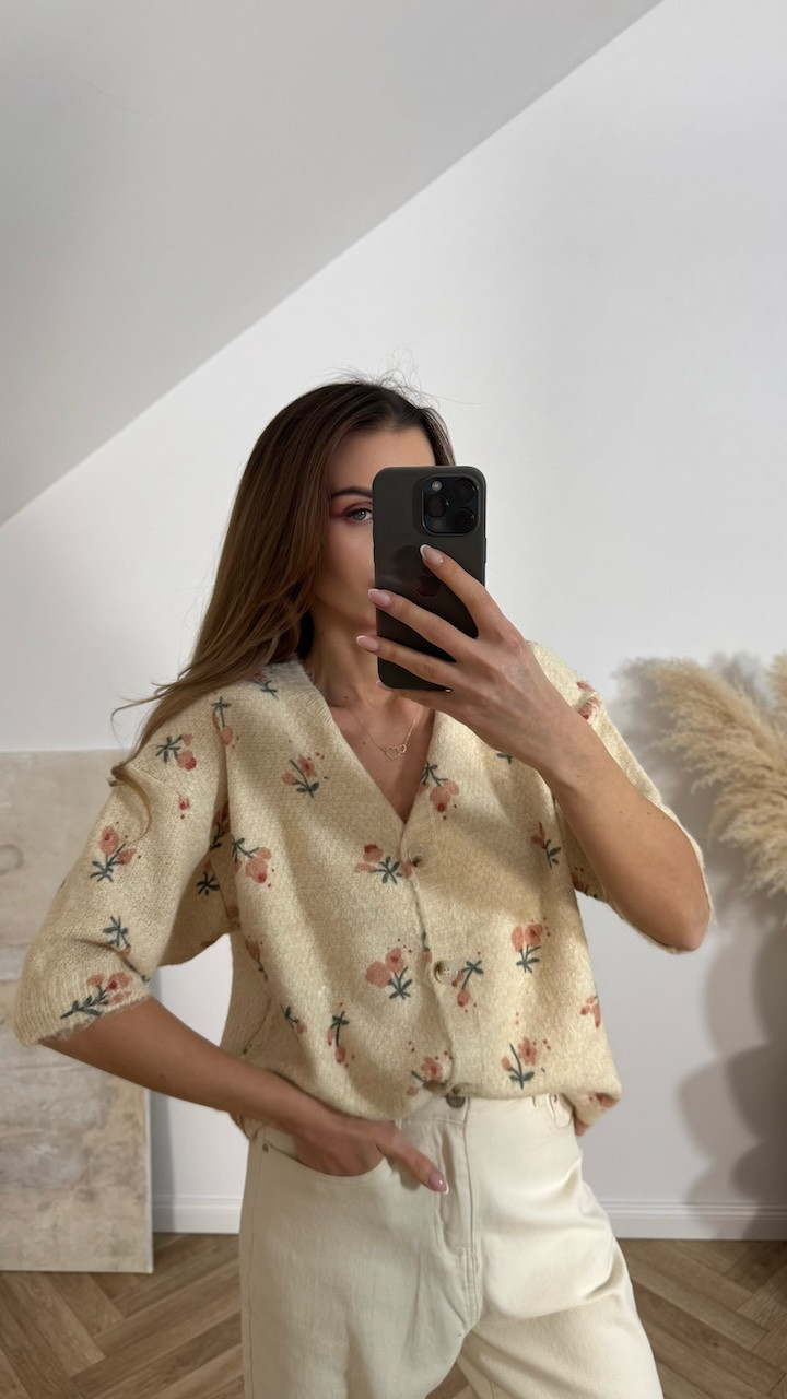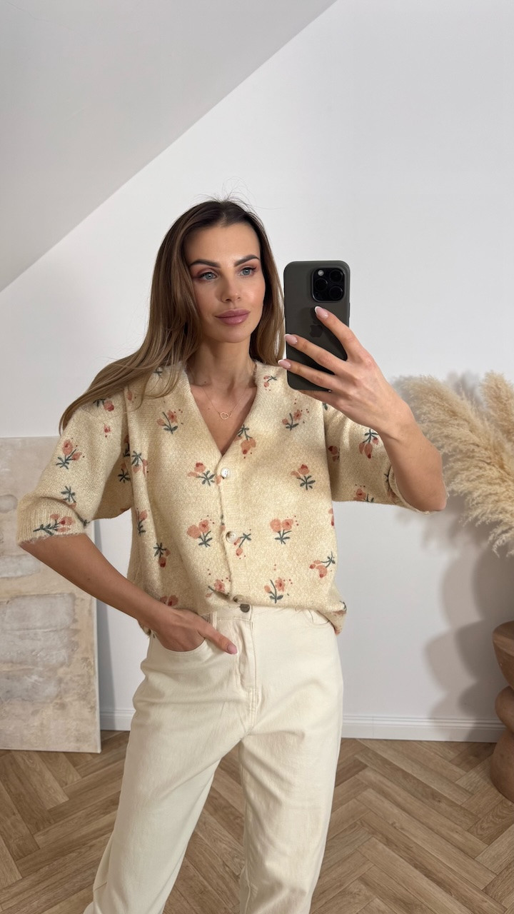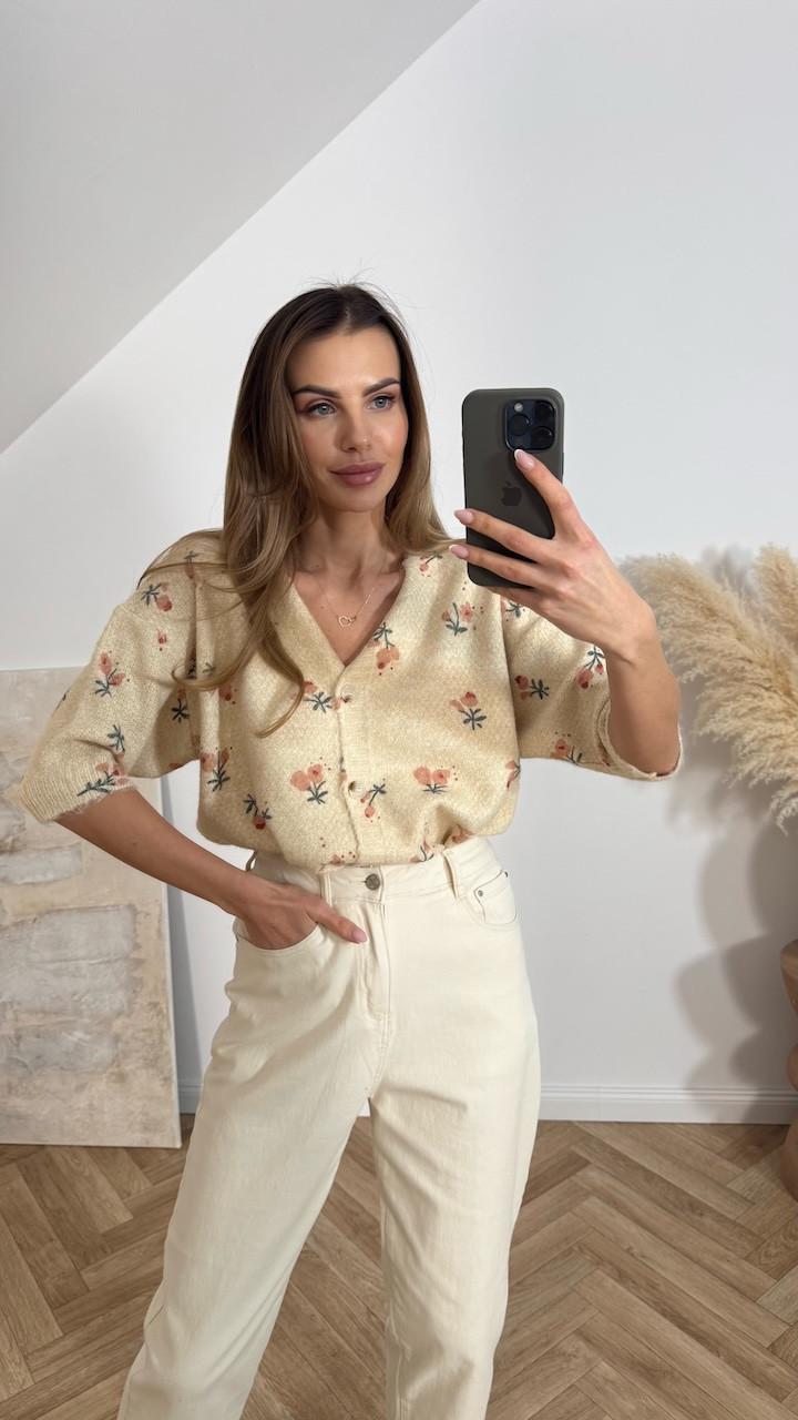 Sweter z krótkim rękawem beżowy w kwiaty