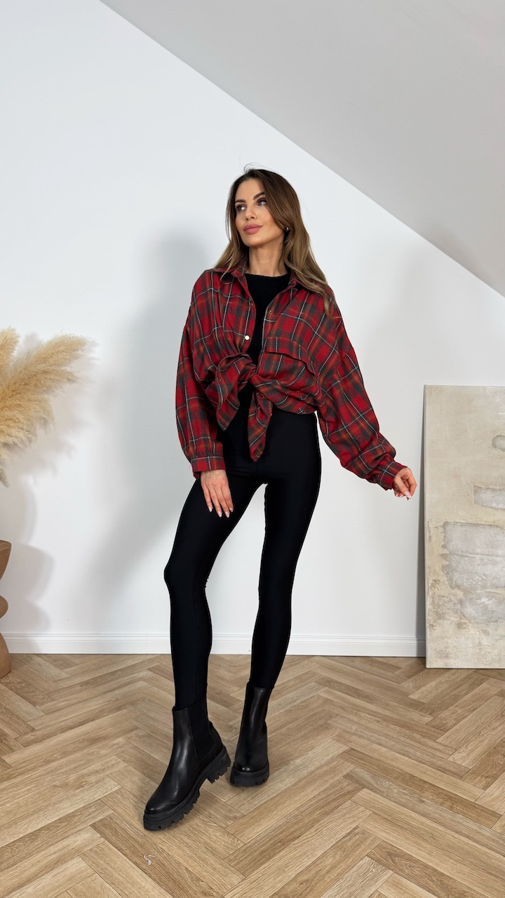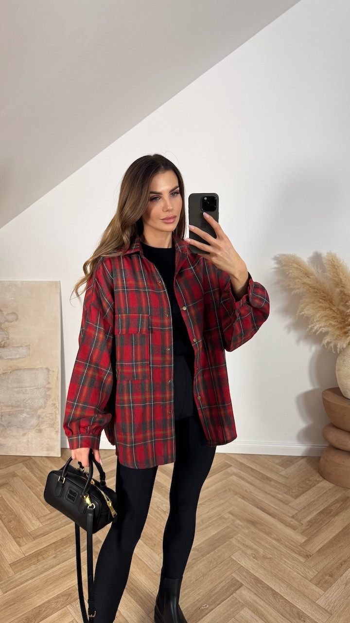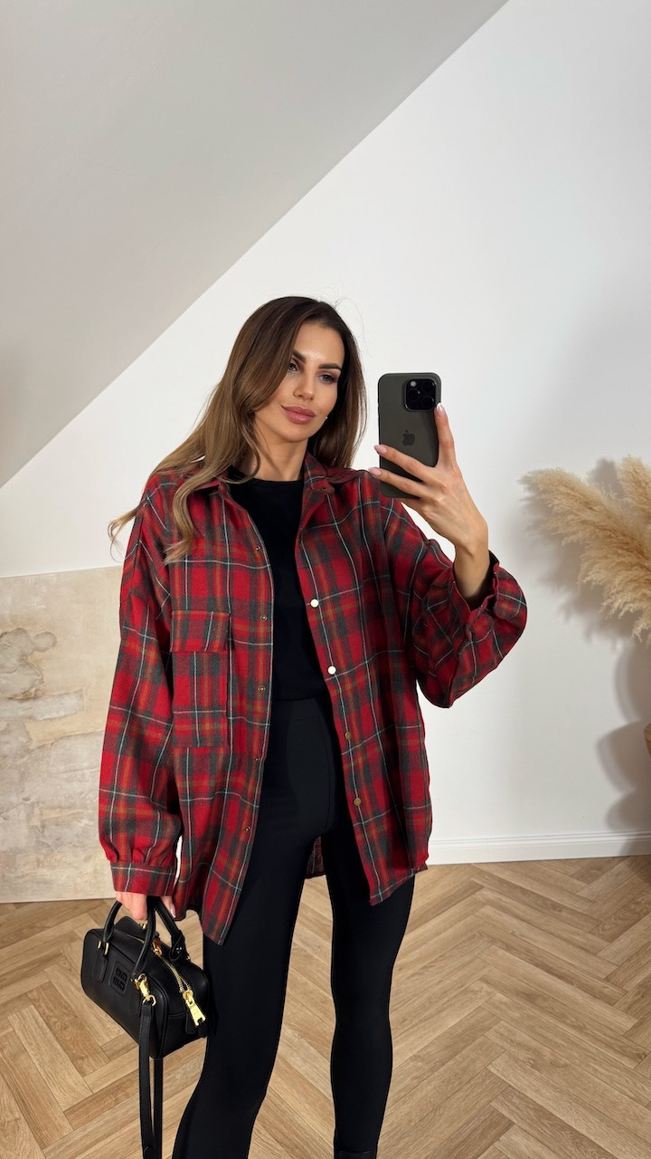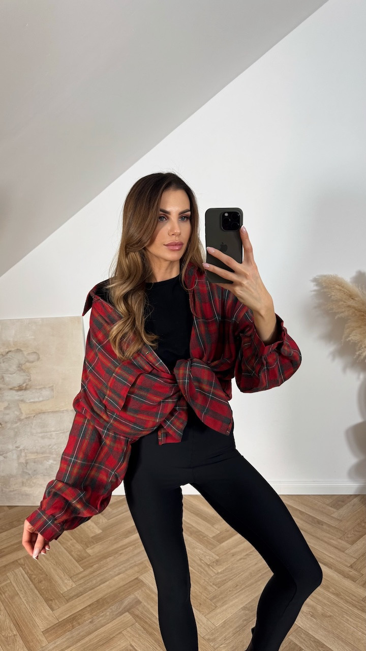 Koszula bawełniana w czerwono szarą kratę