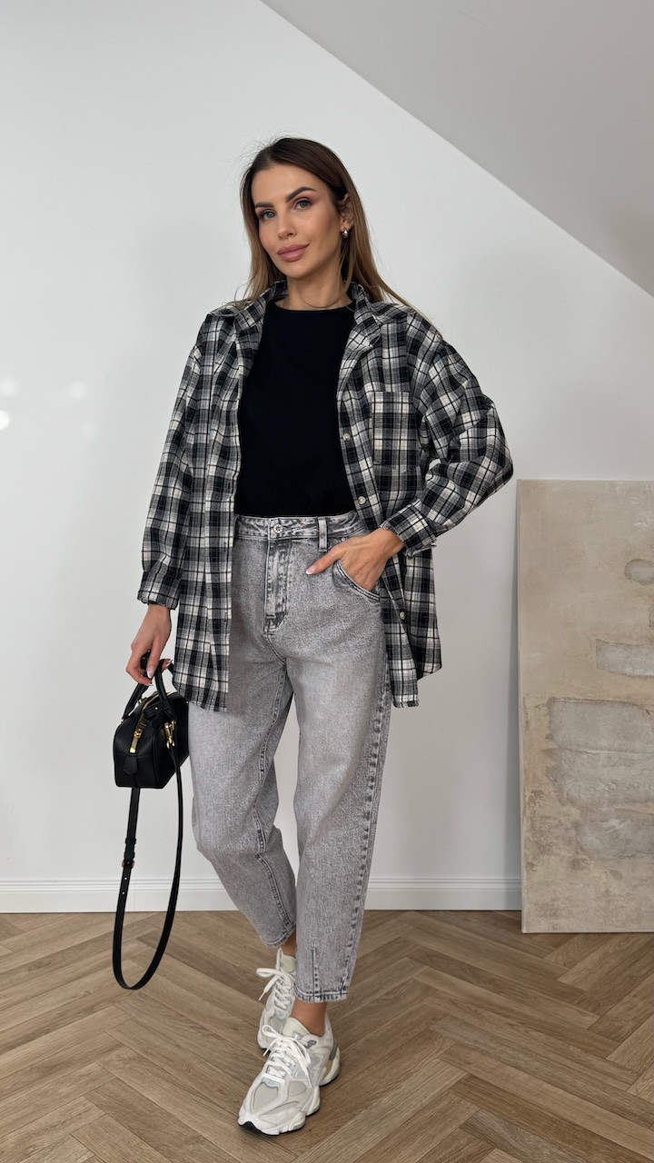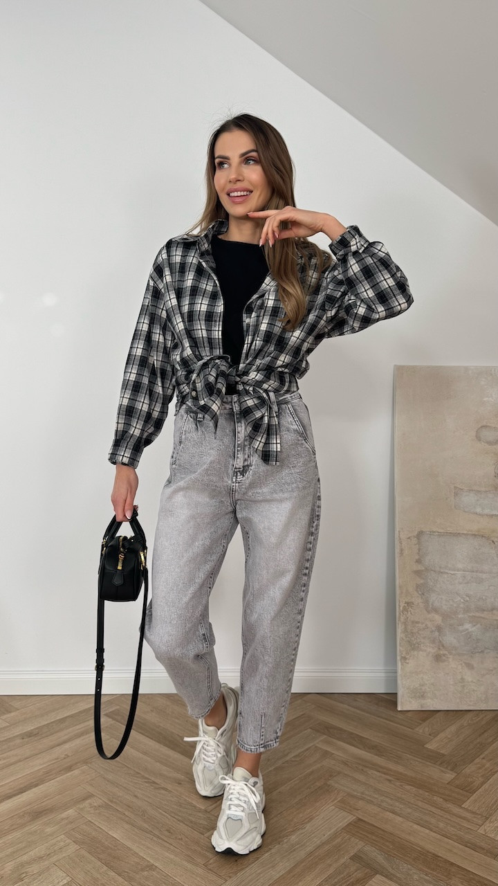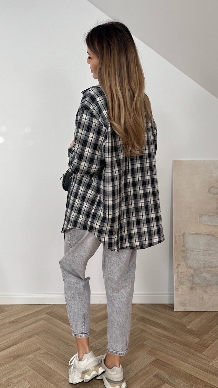 Koszula bawełniana w czarno białą kratę