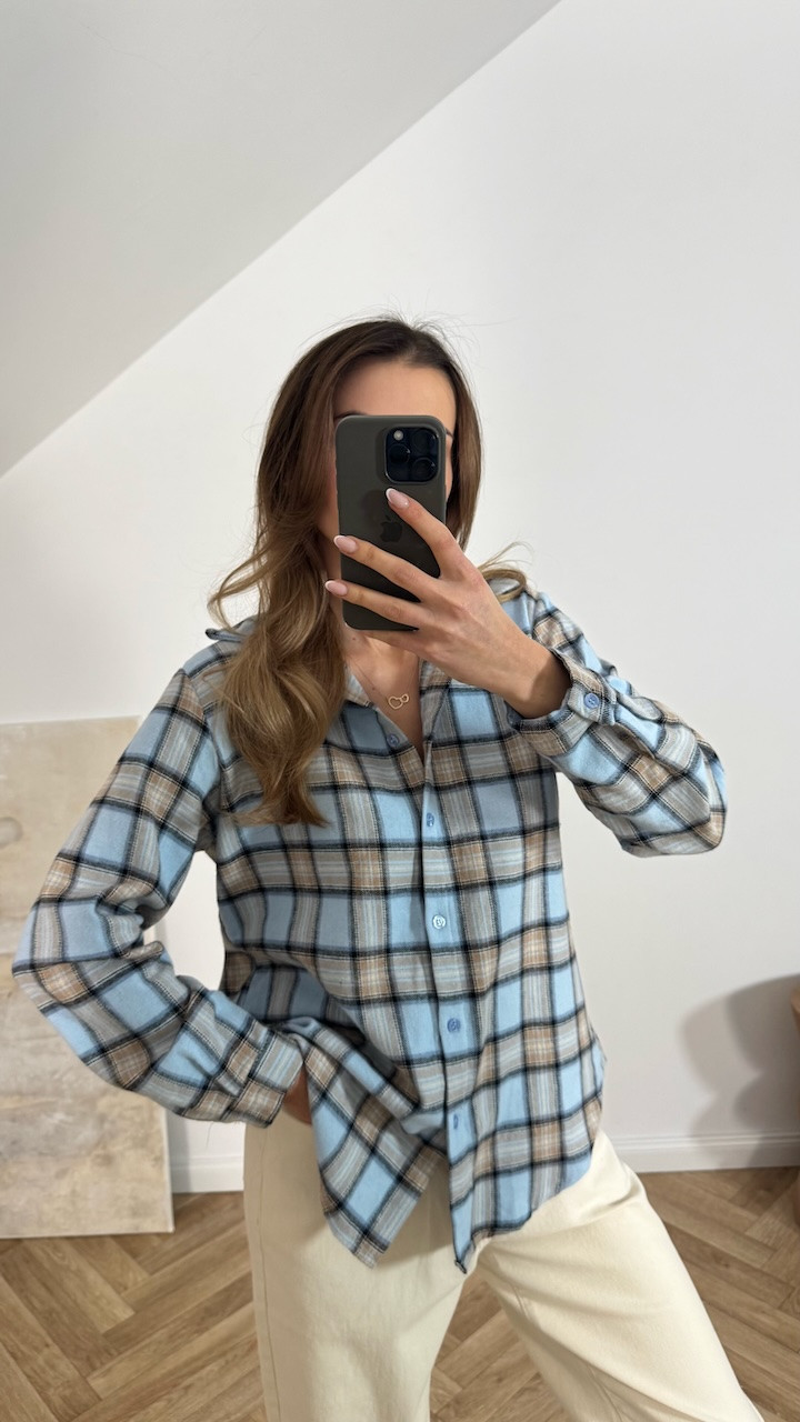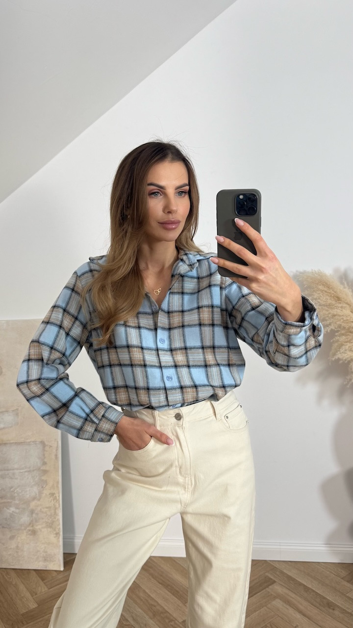 Koszula bawełniana w kratę VIVA beżowo niebieska