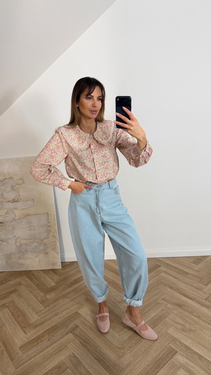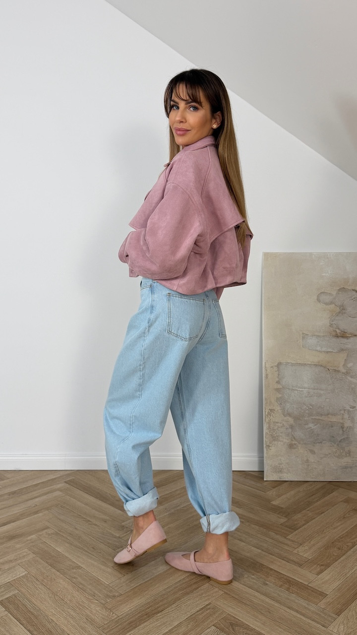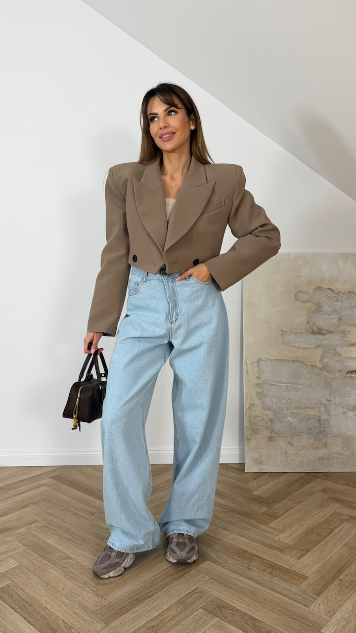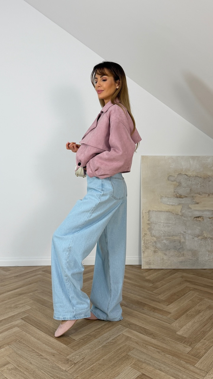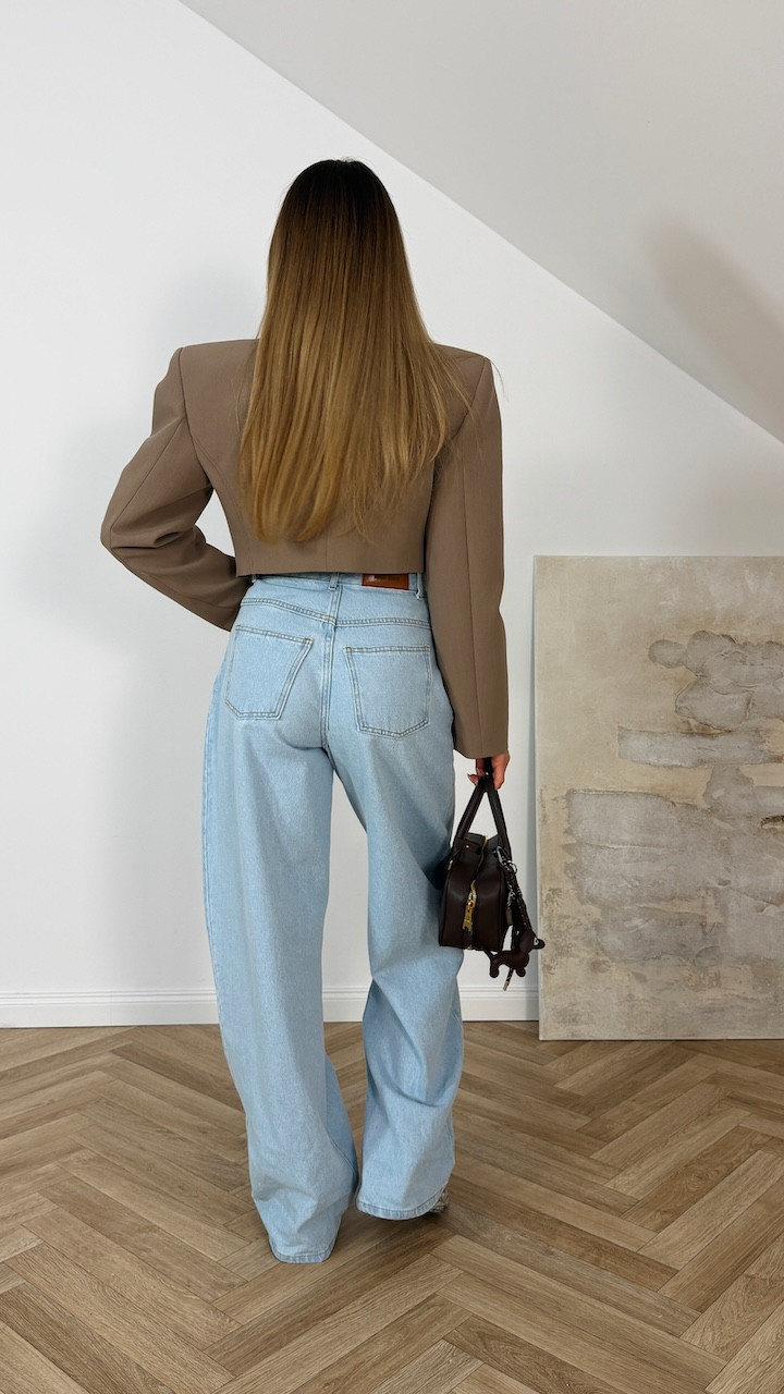 Wysokiej jakości spodnie jeansowe typu Wide Leg z prostą, szeroką nogawką, wykonane z miękkiego, jasnego denimu. Model wyróżnia się starannym odszyciem i dopracowanymi detalami, co podkreśla jego premium charakter.