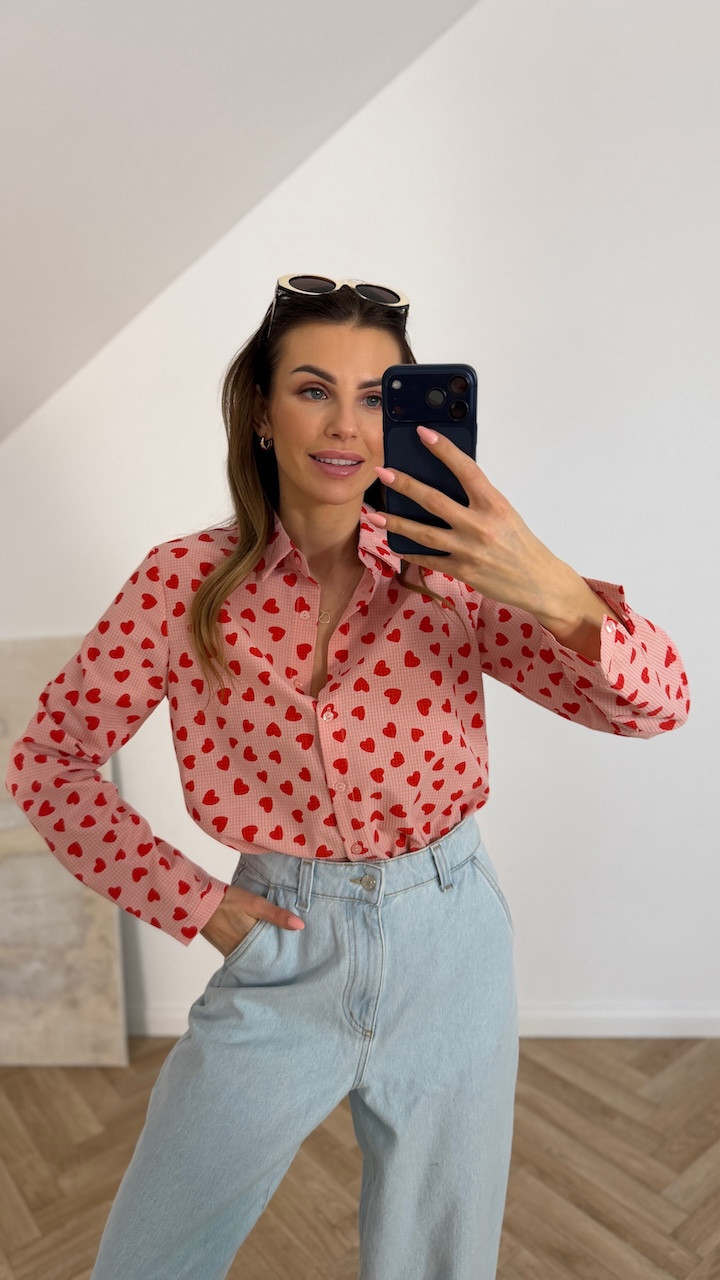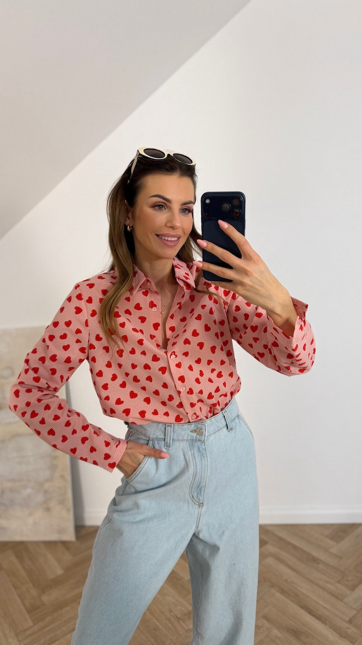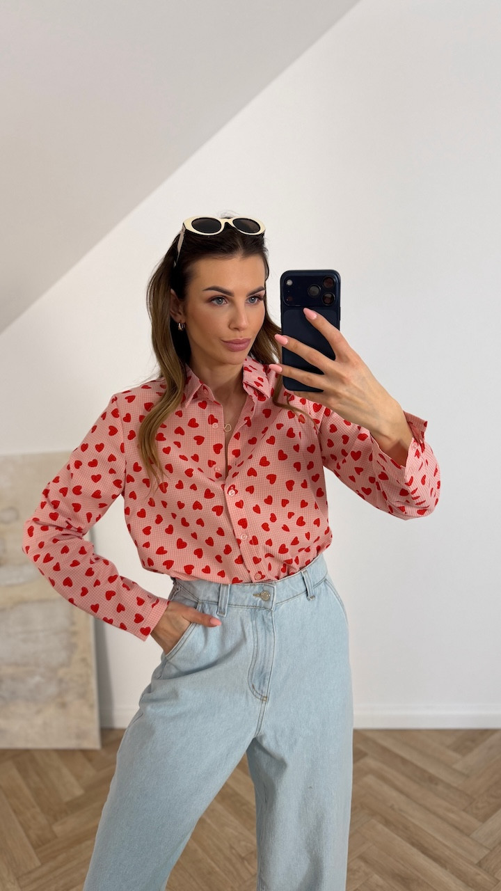 Koszula wykonana jest z wysokiej jakości bawełny, dzięki czemu jest przewiewna, komfortowa i przyjemna w noszeniu. Różowy kolor w czerwone serduszka dodaje jej uroku i sprawia, że model wyróżnia się na tle klasycznych koszul, zachowując jednocześnie elegancki charakter.