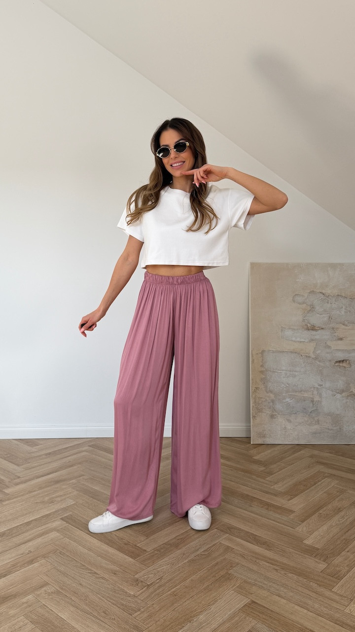 Spodnie wiskozowe z szeroką nogawką MARVE pudrowy róż