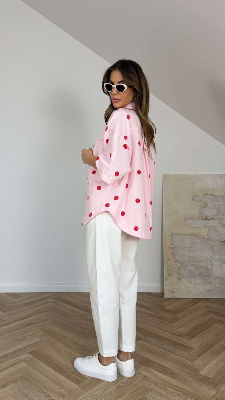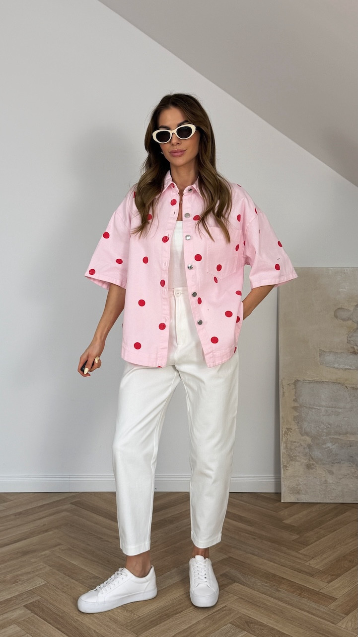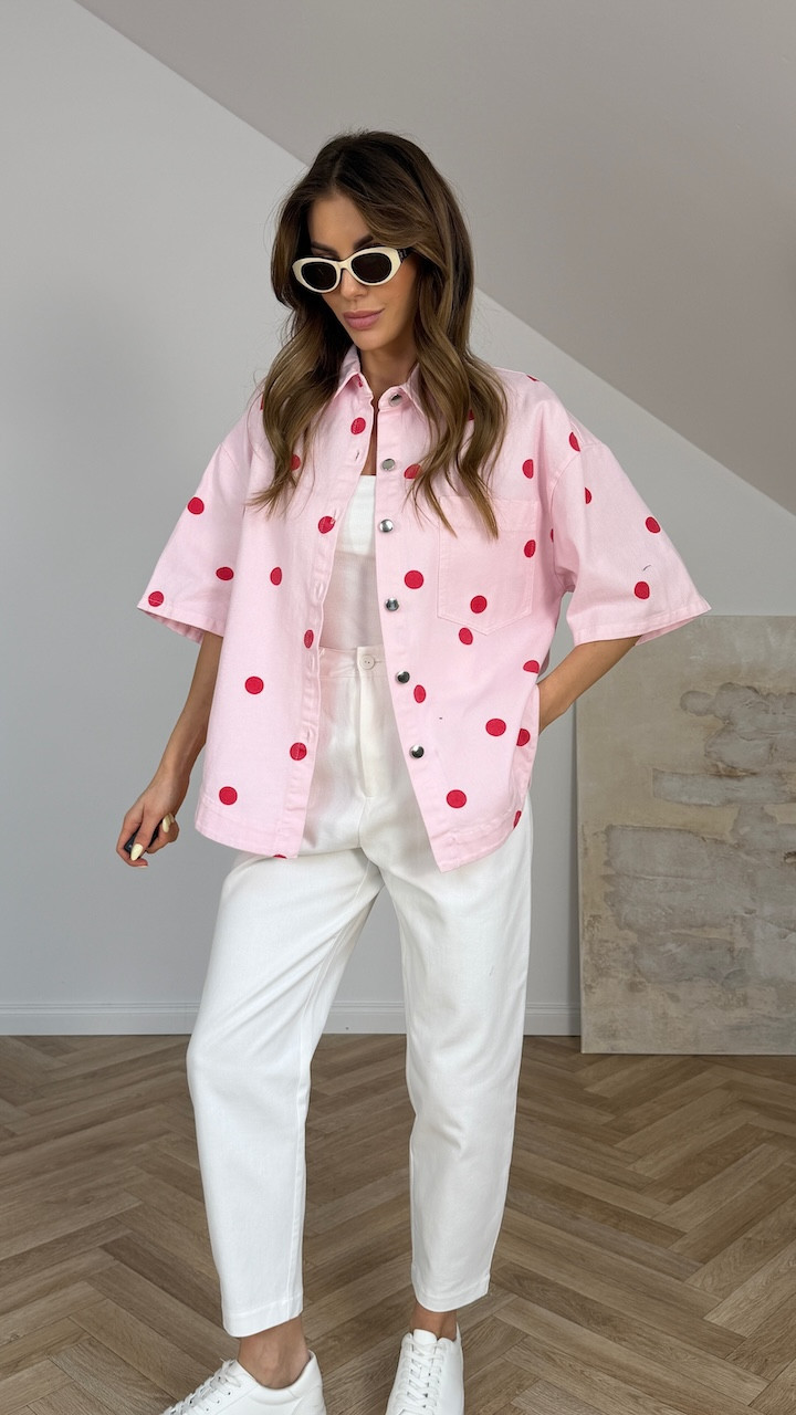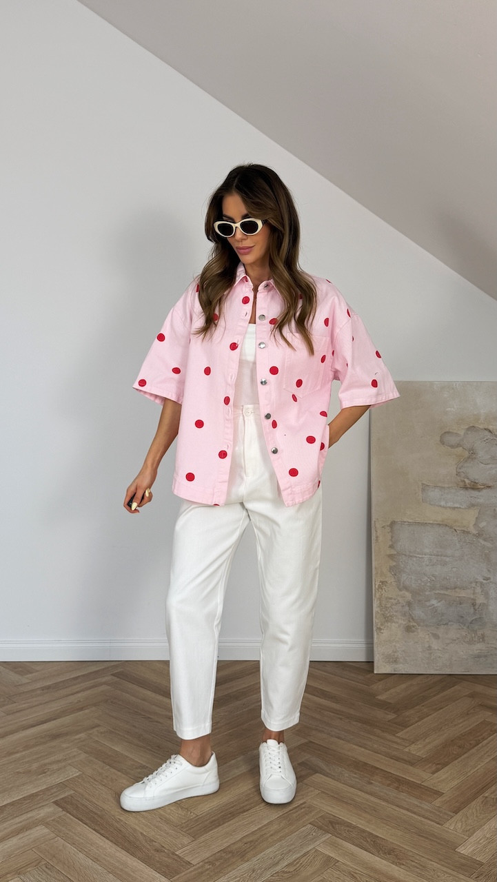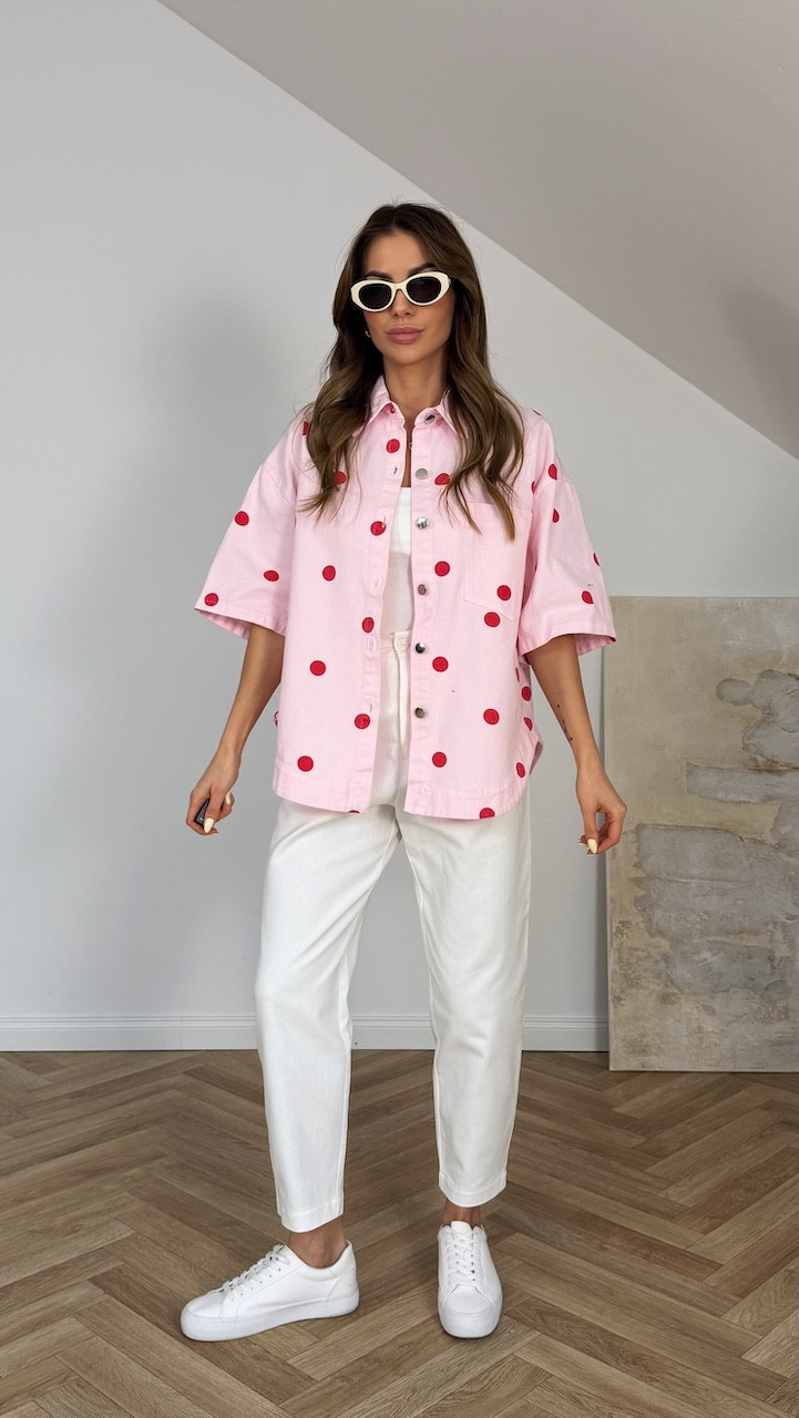 Koszula jeansowa oversize w grochy DOTSY RÓŻOWO CZERWONA