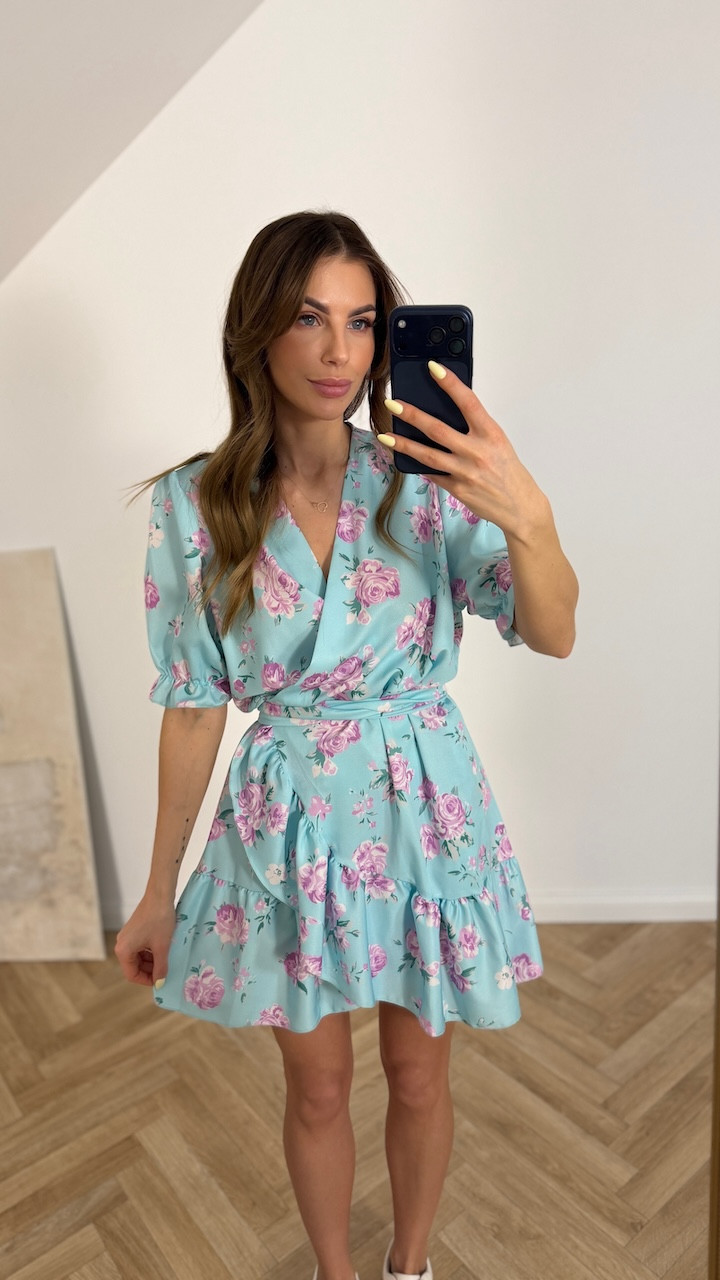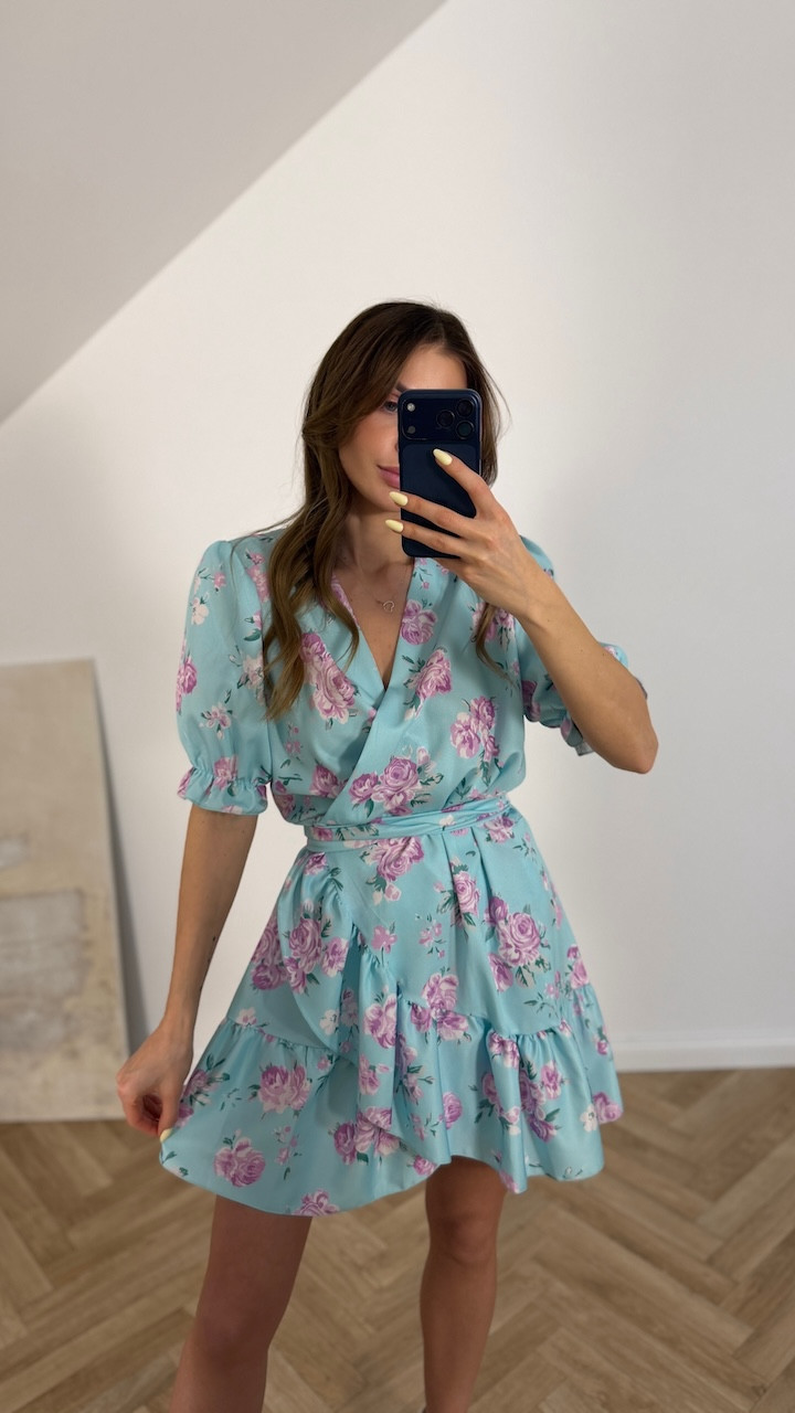 Sukienka LUISA BŁĘKITNA W KWIATY