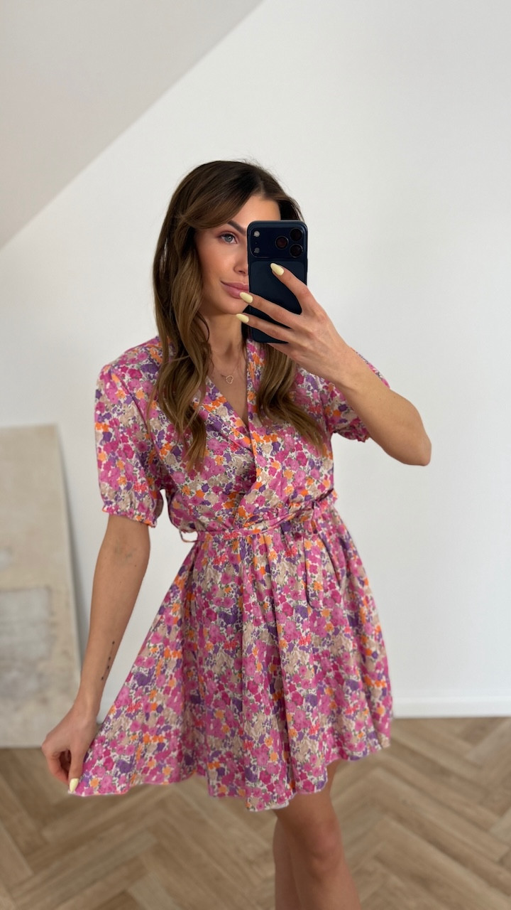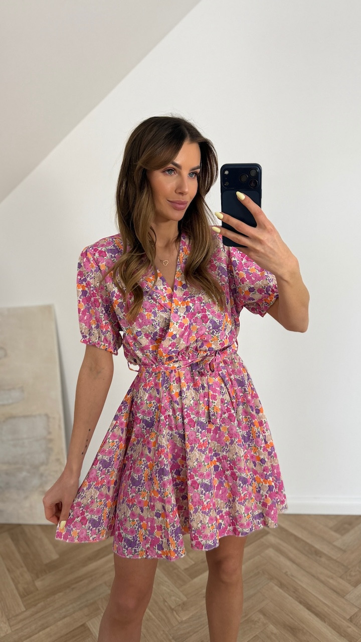 Sukienka DAJANA FIOLETOWO RÓŻOWE KWIATY