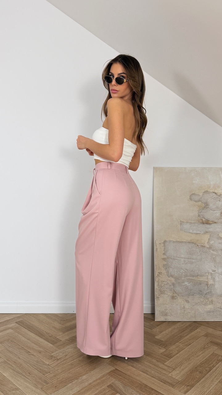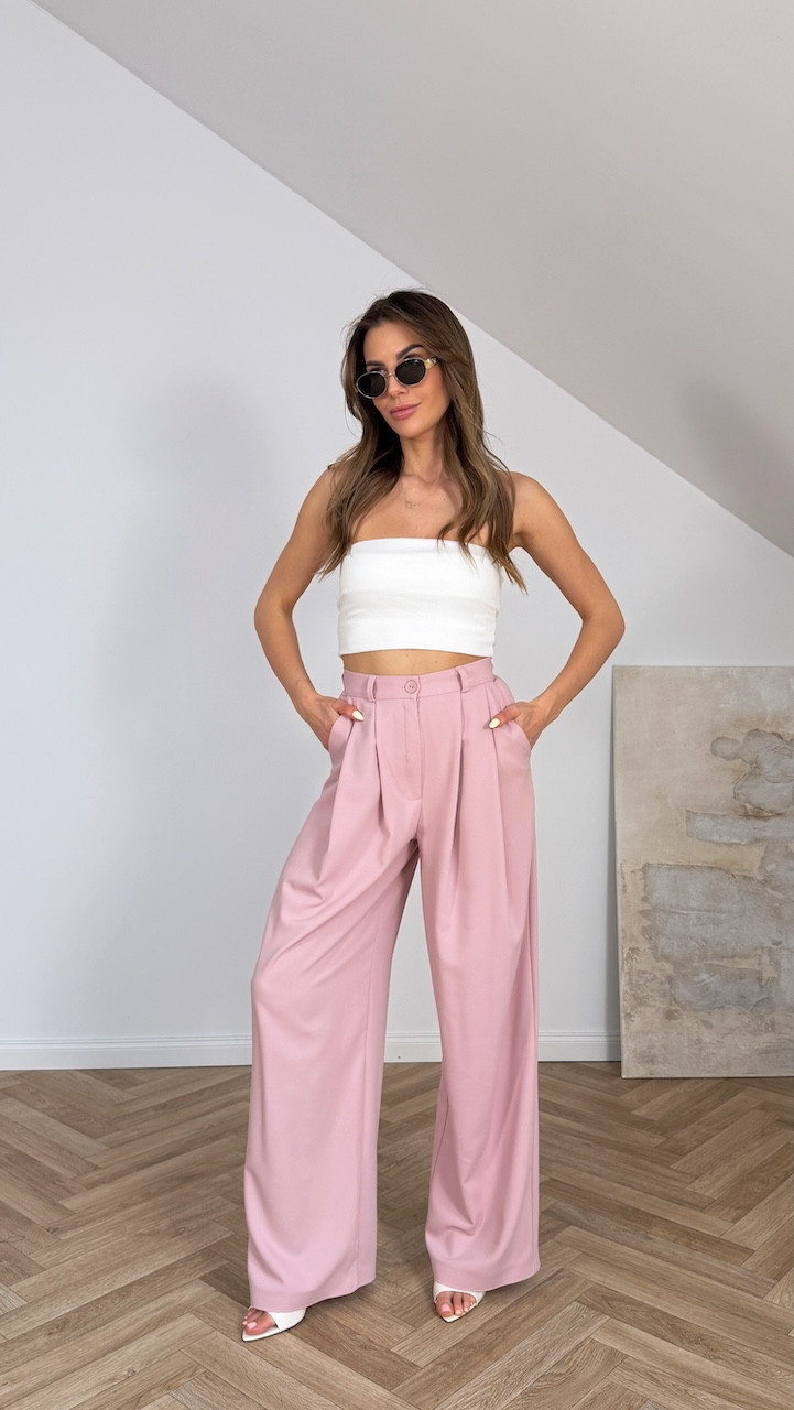 Spodnie eleganckie z prostą nogawką VENICE PUDROWY RÓŻ