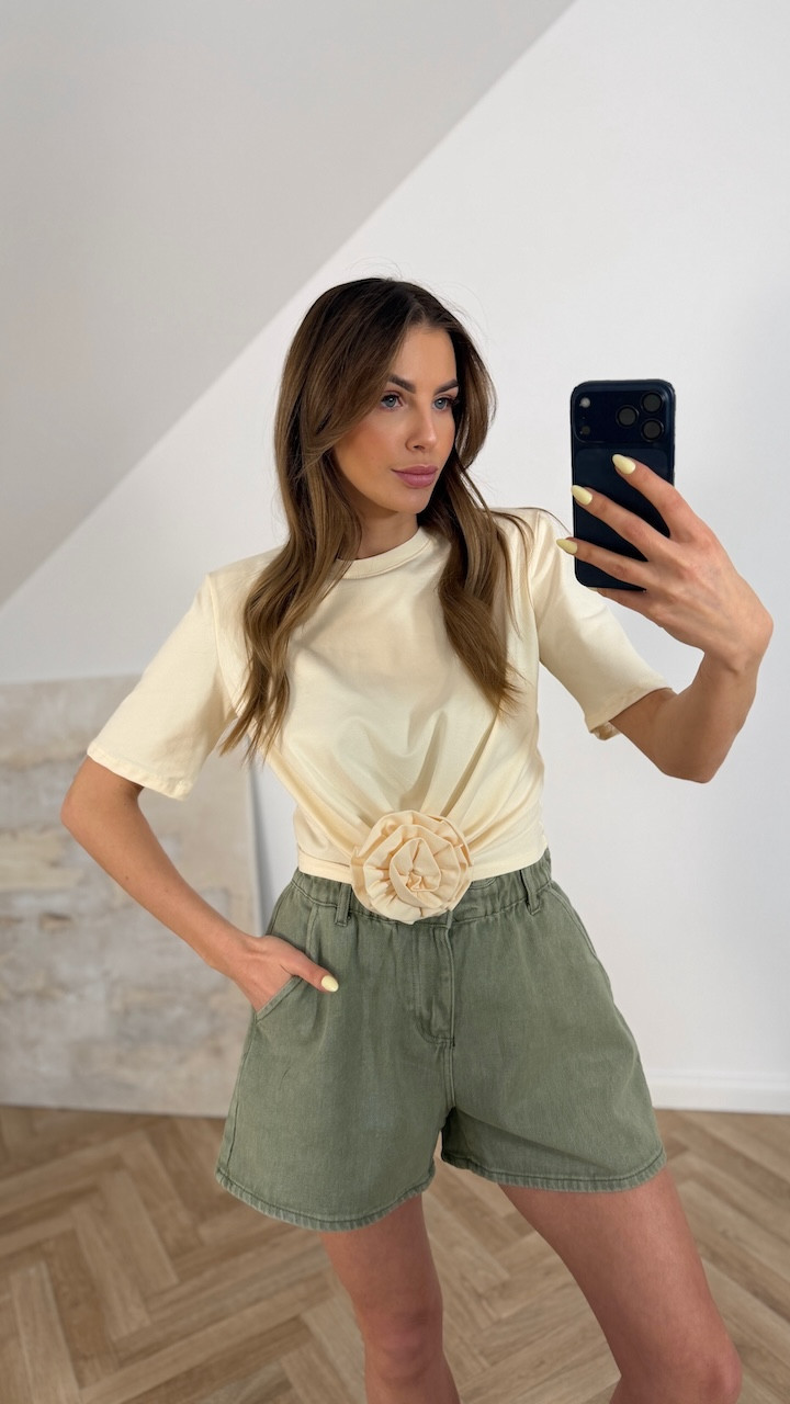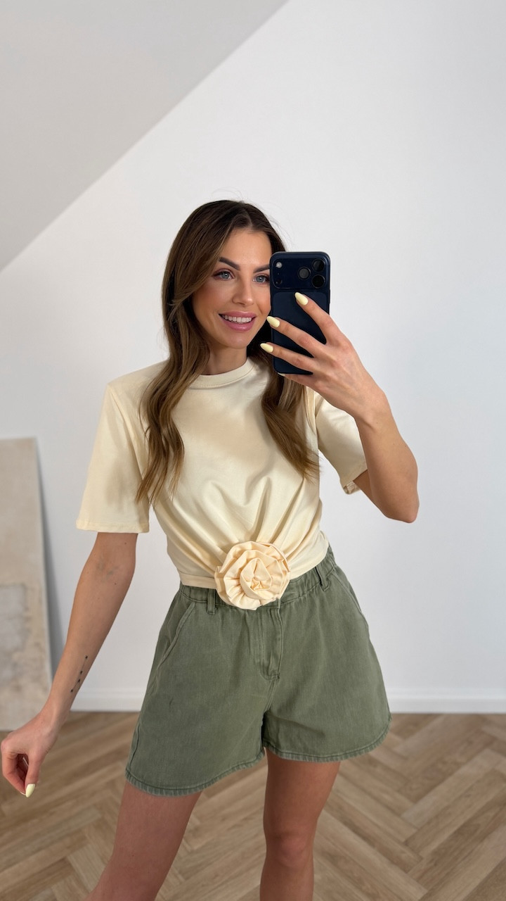 T-shirt z różą masełkowy