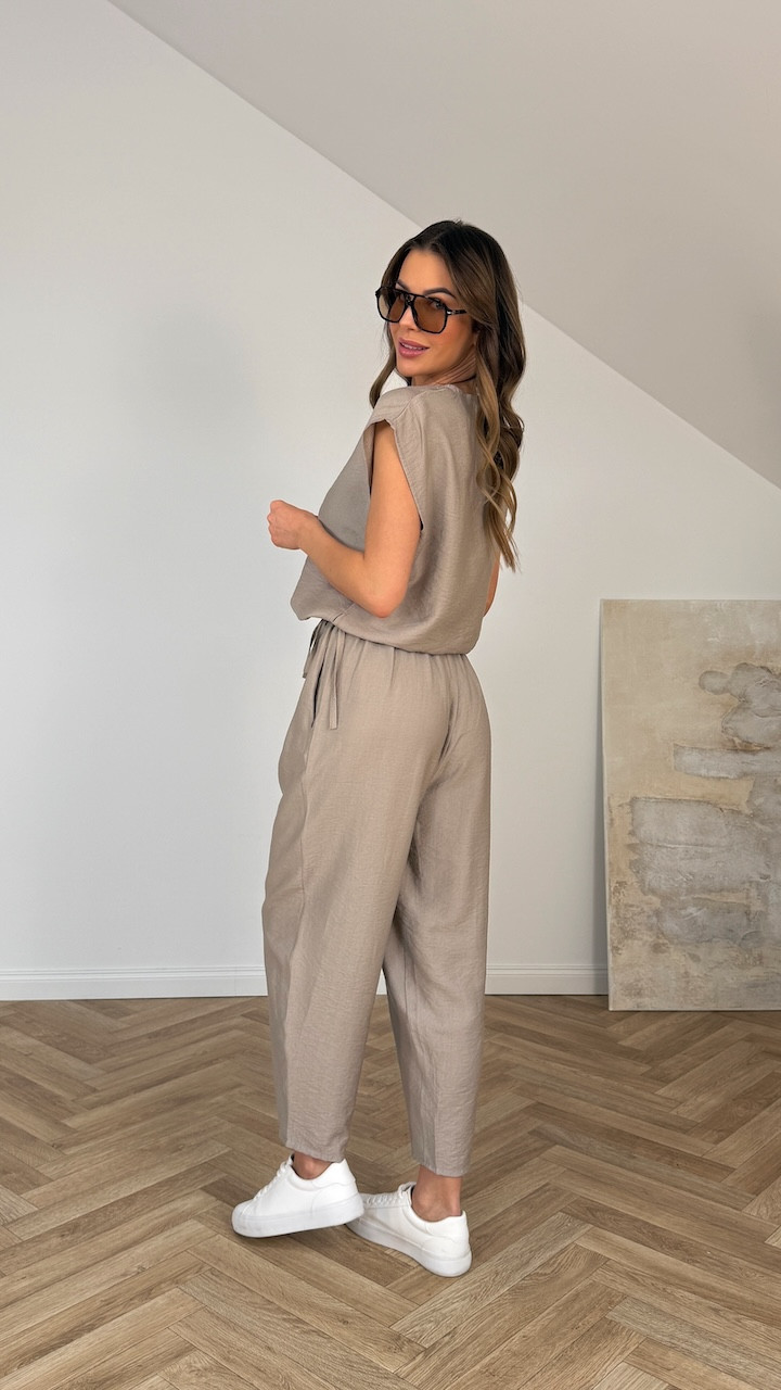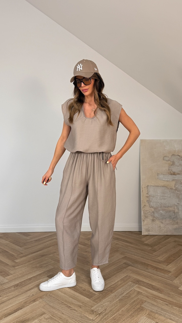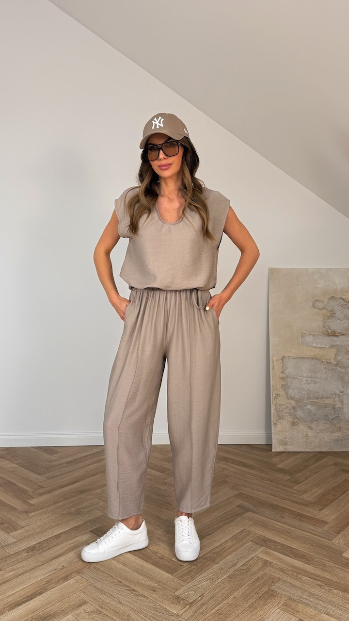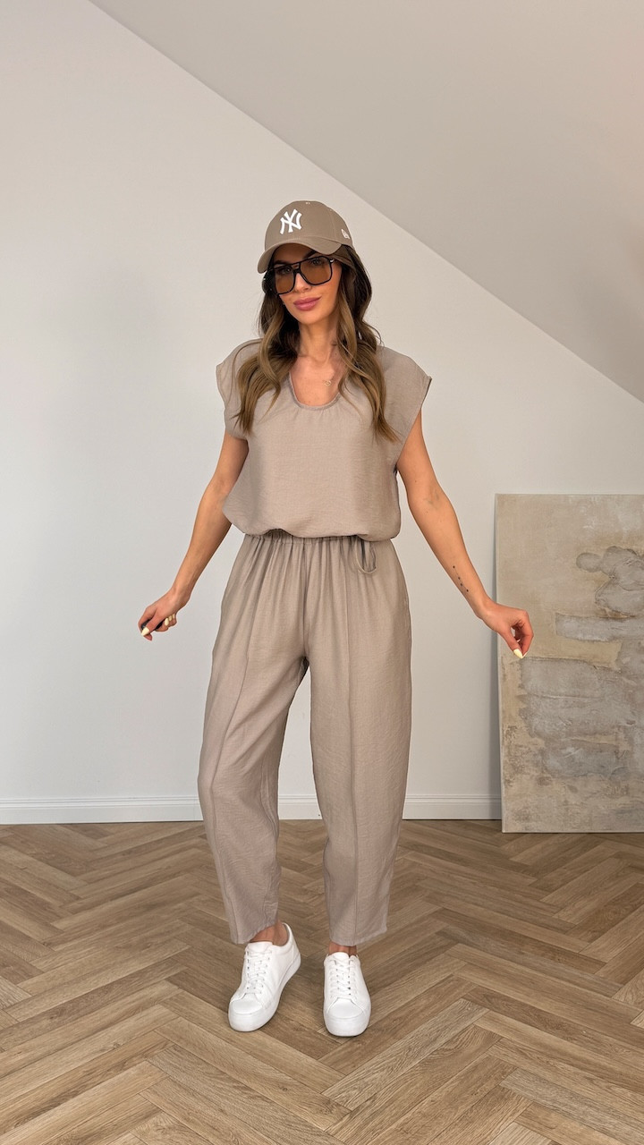 Stylowy i wygodny komplet wiskozowy to idealna propozycja na sezon wiosna–lato. Model łączy w sobie komfort noszenia z modnym, uniwersalnym wyglądem, dzięki czemu świetnie sprawdzi się zarówno na co dzień, jak i w bardziej eleganckich stylizacjach.