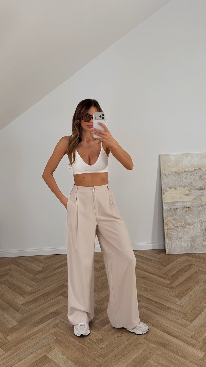 Spodnie z prostą szeroką nogawką IGO BEŻOWE